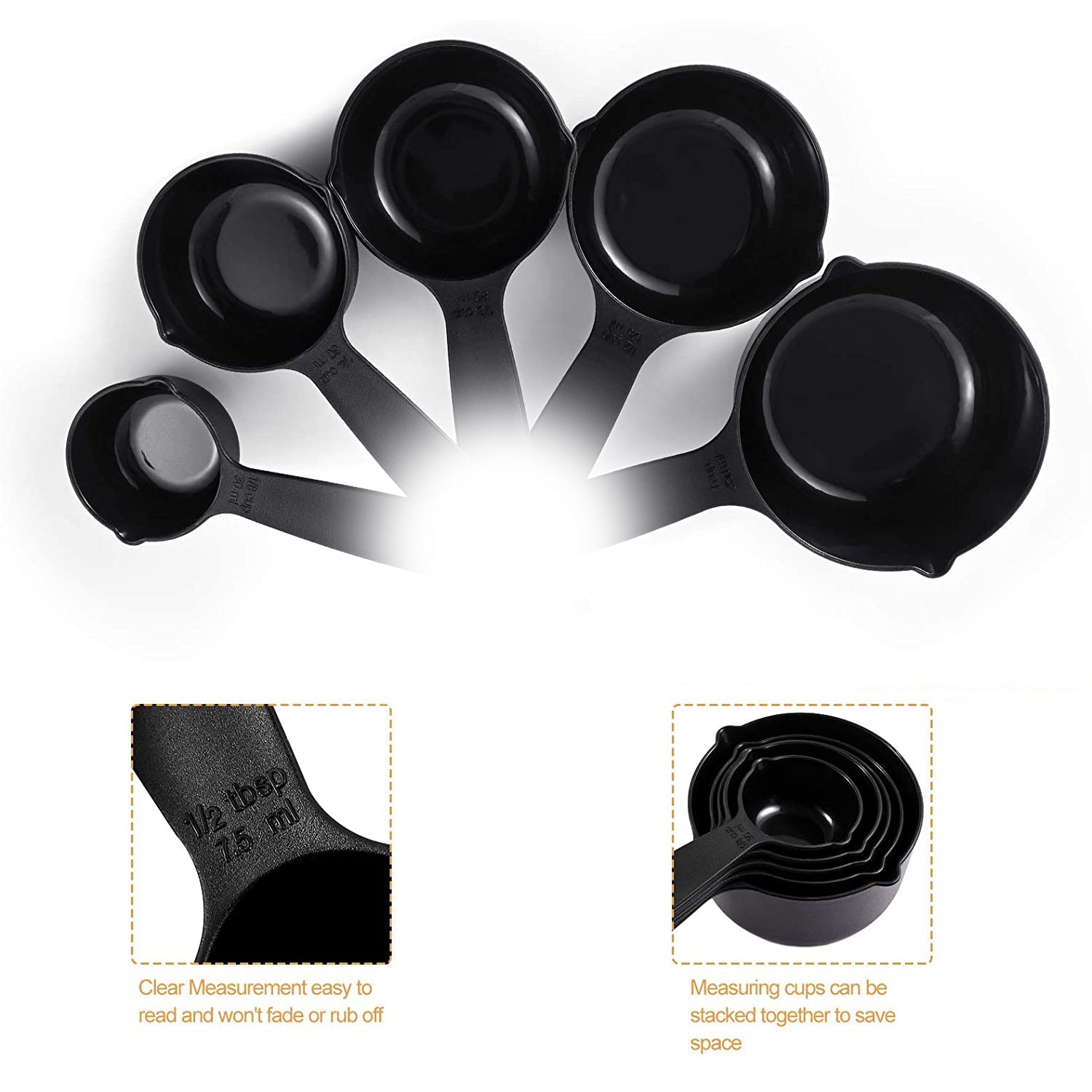- Made from durable, safe material: Our measuring spoons and cups set are made of FDA food grade plastic material which is lightweight, non-toxic and durable. They are dishwasher safe.