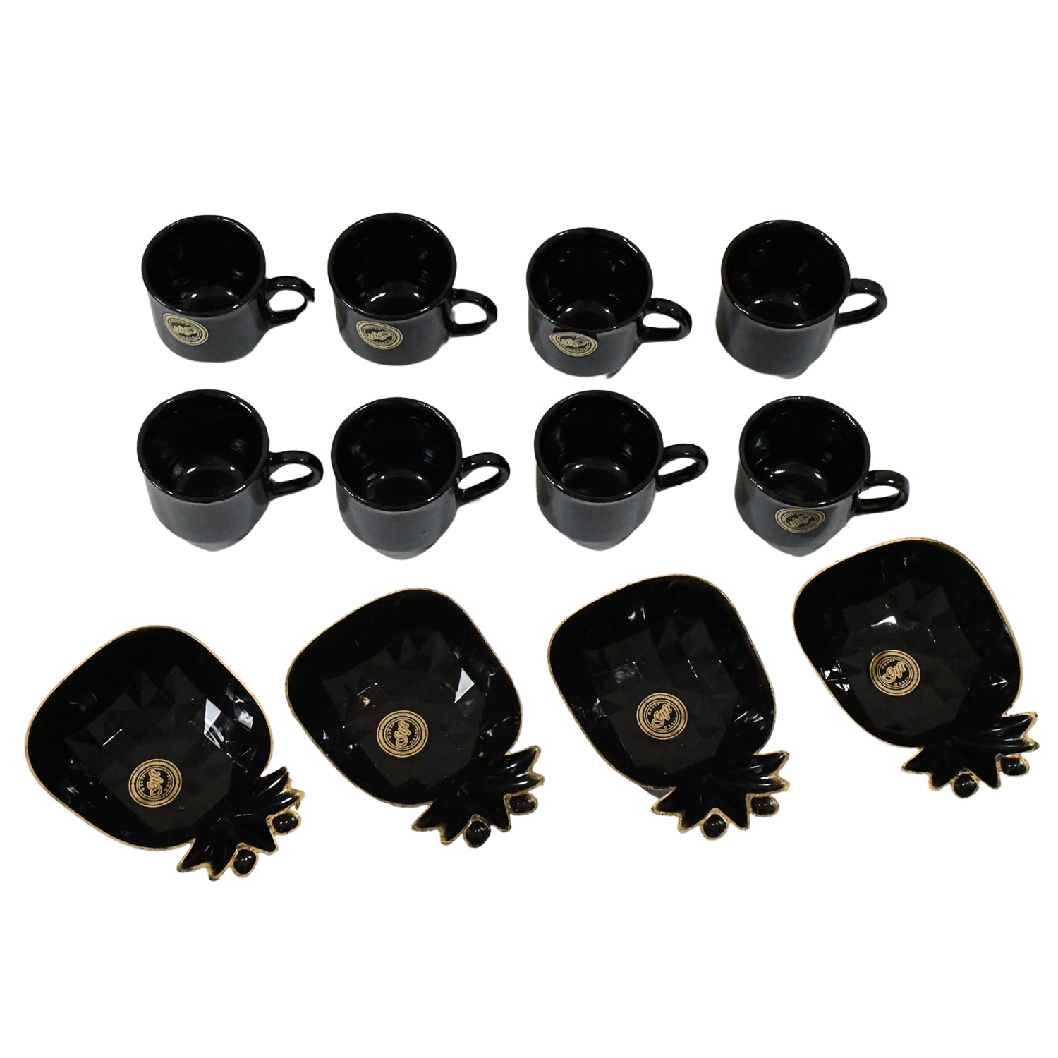 Pine Junction Ceramic Tea Cups Mug Set With Pineapple Shape Serving Bowl (12 Pcs Set)